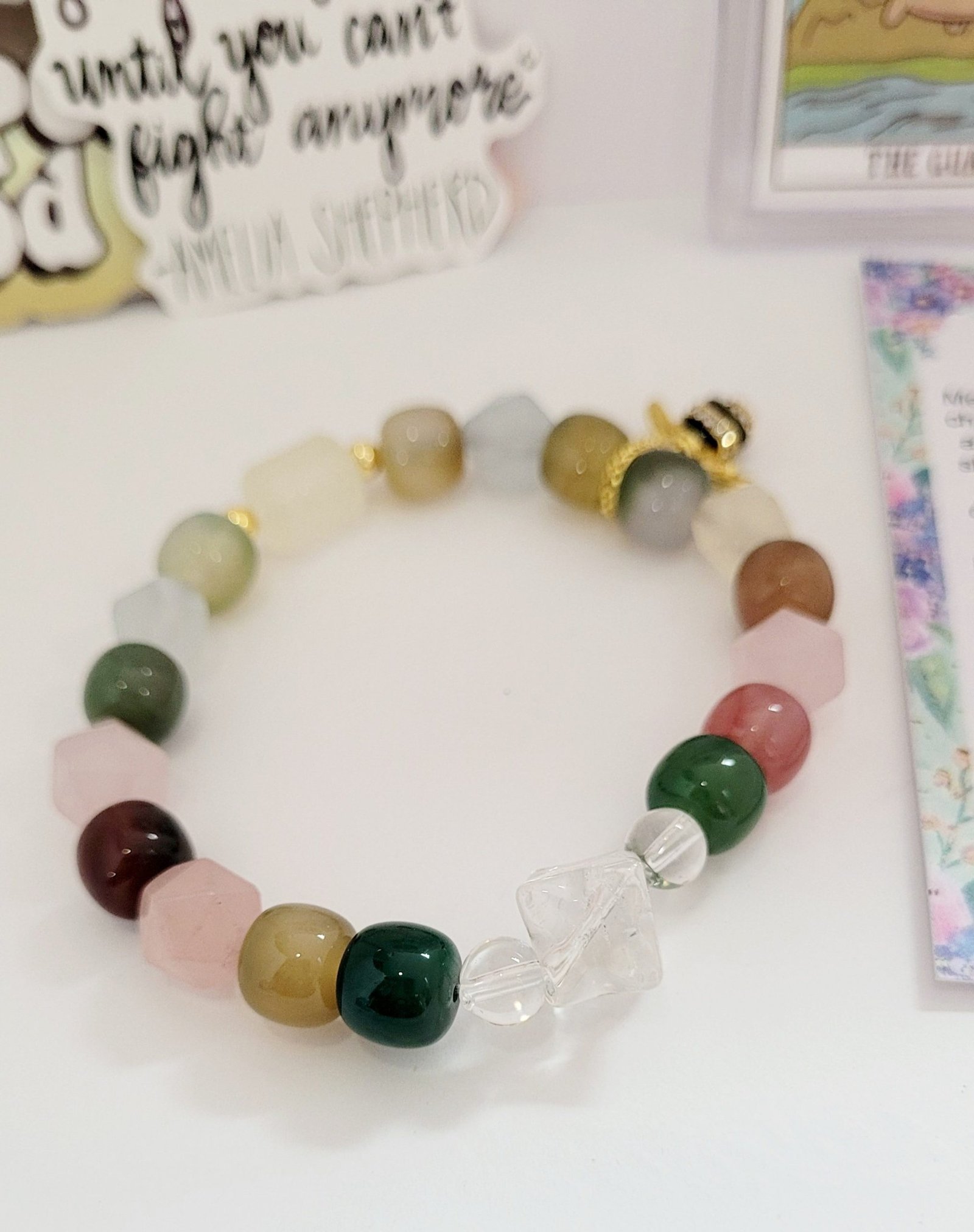 Celebrate life’s milestones with captivating a Gemstone bracelet. The clear quartz’s benefits is enhancing mental clarity. It can help with emotional stability, and it’s popular in meditation and restorative work. It’s also often used for manifestation and can help create more focus and clarity around a desire. It is a protective stone and can be used to amplify psychic abilities.