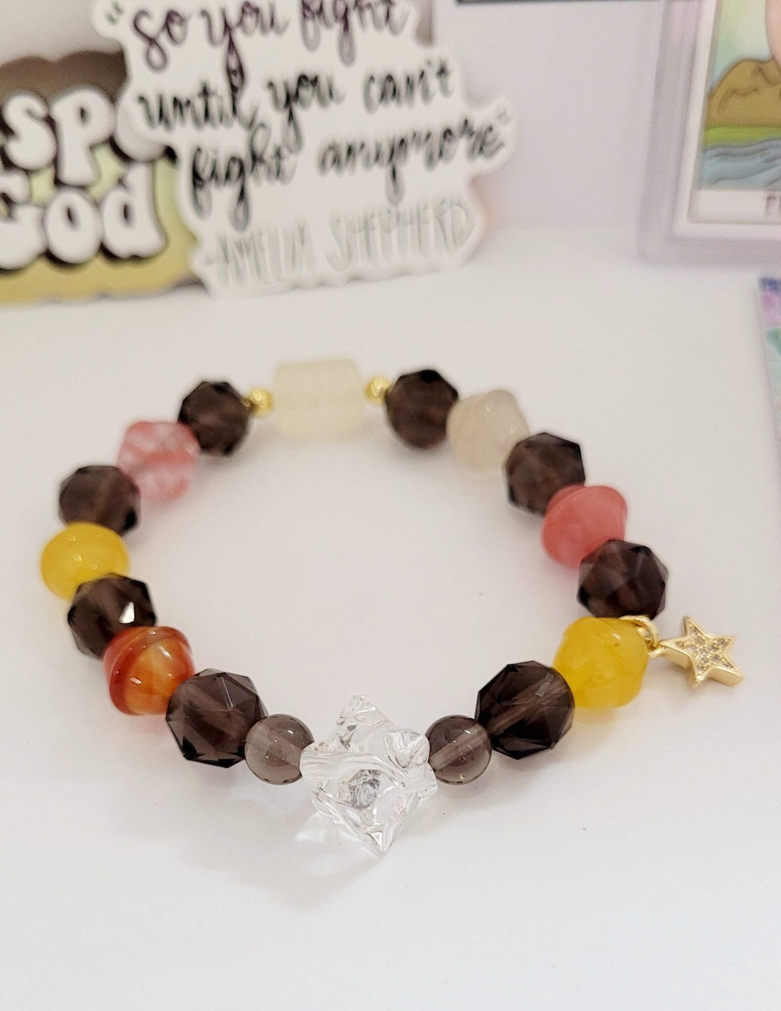 Smoky quartz is known for dispersing fear or negativity and removing depression. It can be used to provide emotional balance, remove anxiety or stress, and at the same time promote positive thoughts. For those who suffer from nightmares, it can remove them and replace them with manifestations in your dreams.Citrine attracts wealth, prosperity and success. It imparts joy, wonder, delight and enthusiasm. Raises self-esteem and self-confidence.