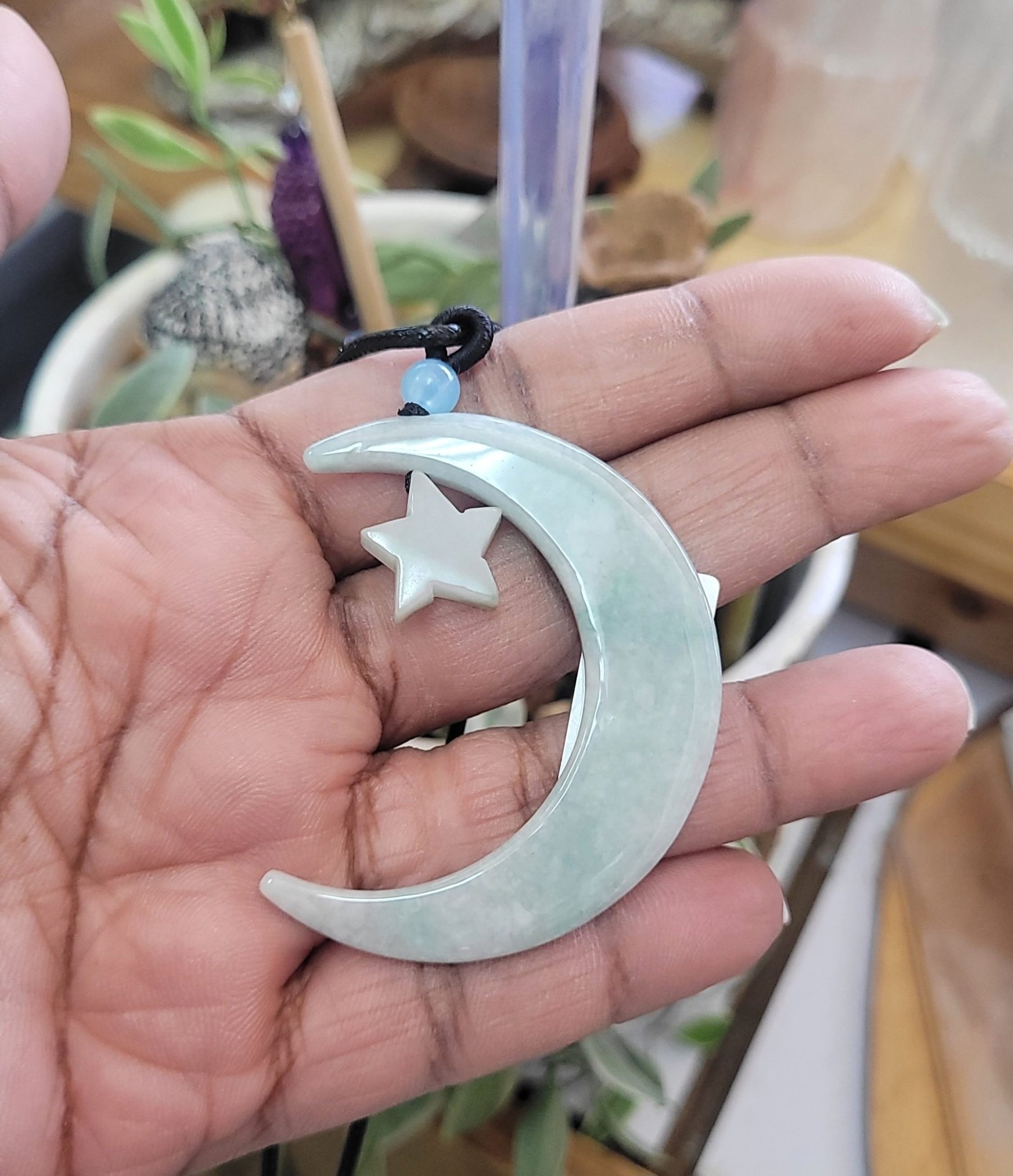 | Size | 15mm Blue water jade donut, 17mm Burmese Jade, 30mm Burmese Jade donut, 33mm long Hetian jade Puxiu, 5mm Beaded Burmese jade, 8mm Hetian Jade Barrel, Burmese crescent moon and star |
