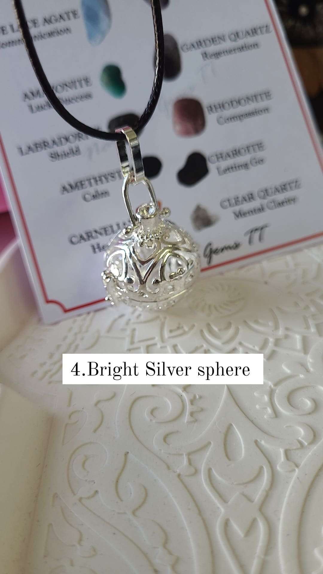 Each locket/cage somes with a faux leather cord..and 10 crystal chips that you can interchange as you need..locket/cage can hold as much as 3 to 5 crystal chips at a time ..